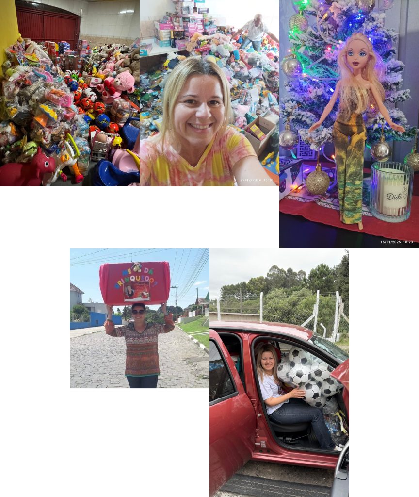 Brinquedos usados em bom estado ou brinquedos novos são muito bem-vindos. Doações em dinheiro também podem ser realizadas por meio do Pix: 016.806.829-03, utilizado exclusivamente para a aquisição de itens que ainda estiverem faltando.